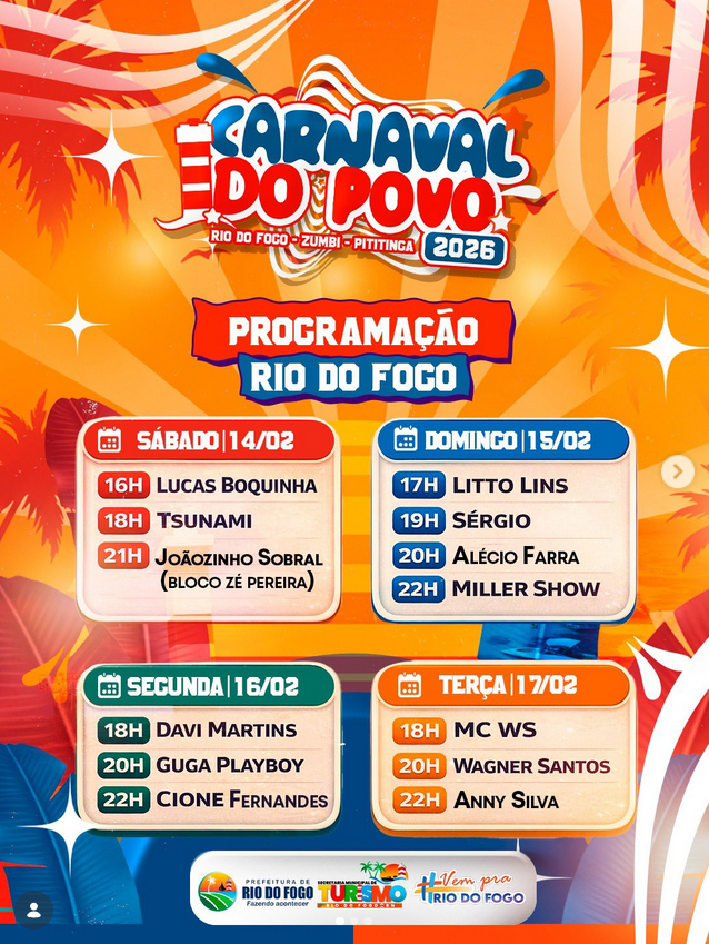 Rio do Fogo – Shows, animação e muita energia na sede do município.